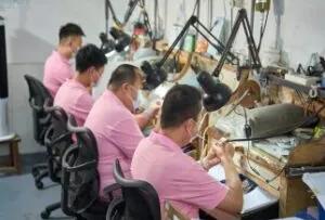 Cast pieces are separated from trees, assembled, welded, and precisely adjusted to achieve correct structure, alignment, and overall jewelry form.