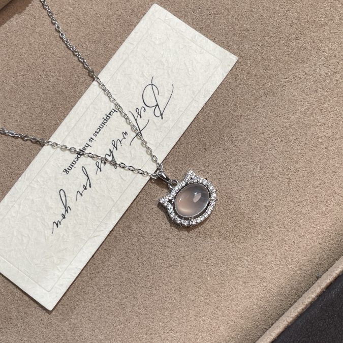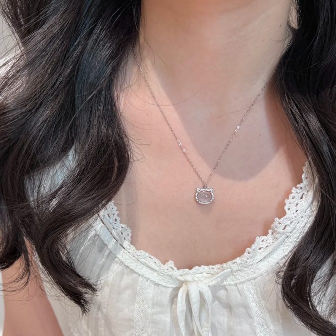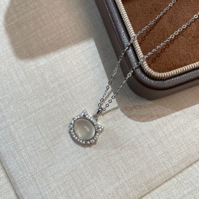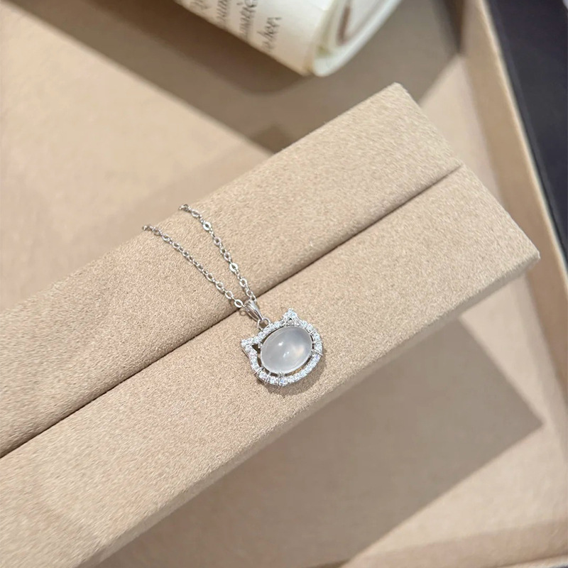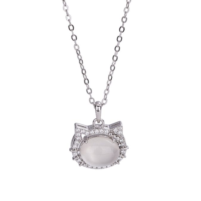 925 Sterling Silver Cat Pendant Necklace for Women Elegant White Agate Minimalist Jewelry Timeless Gift Cute Accessories
