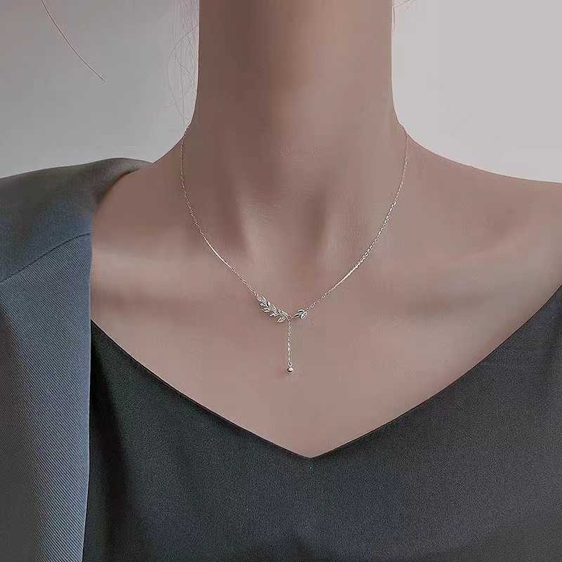 925 Sterling Silver Jewelry Necklace with Leaf and Wheat Design Light Luxury Minimalist Pendant Chain for Women