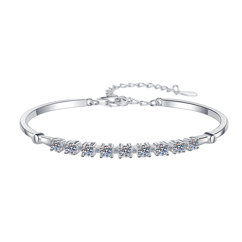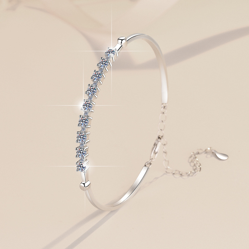 Adjustable 925 Sterling Silver Bracelet for Women Cubic Zirconia Modern Minimalist Fashion Silver Jewelry Wholesale Trendy Everyday Accessories