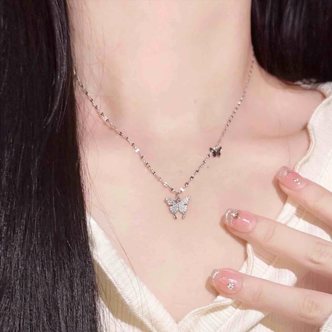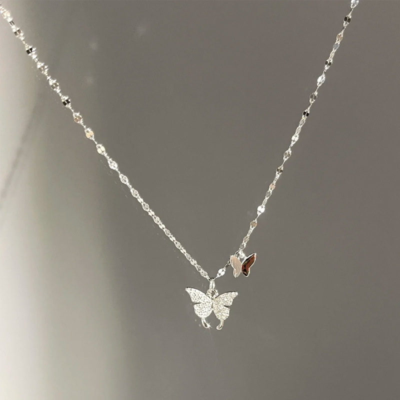 Elevate your style with this elegant 999 sterling silver jewelry featuring a delicate butterfly pendant adorned with sparkling cubic zirconia stones, crafted as a minimalist clavicle chain for effortless layering this dainty silver jewelry combines timeless elegance with trendy Y2K-inspired light luxury for versatile everyday sophistication.