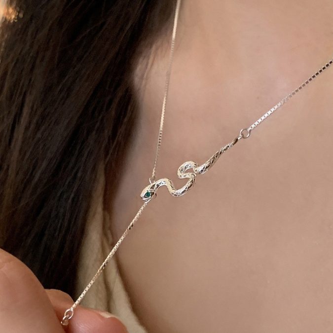 Discover the perfect blend of timeless elegance and modern sophistication with this exquisite sterling silver jewelry piece designed for the contemporary woman Crafted in premium 925 sterling silver this serpent pendant necklace features a sleek minimalist silhouette elevated by delicate tassel detailing that adds subtle movement and texture to your look The versatile layered chain design allows effortless styling whether worn alone for understated refinement or paired with other silver jewelry pieces for a chic stacked effect Its lightweight construction and polished finish ensure comfortable all-day wear making it an ideal choice for elevating casual outfits or complementing formal attire Merging artistic craftsmanship with everyday versatility this silver jewelry creation embodies both trend-forward style and enduring quality a must-have accessory for women seeking to infuse their wardrobe with understated luxury and modern charm