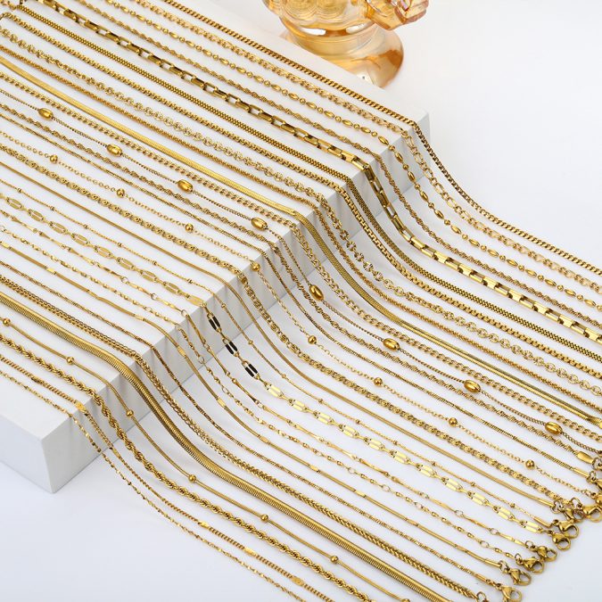 Brass Jewelry Women Stainless Steel Snake Chain Plain Clavicle Necklace with 18K Gold Plating Fashionable Versatile