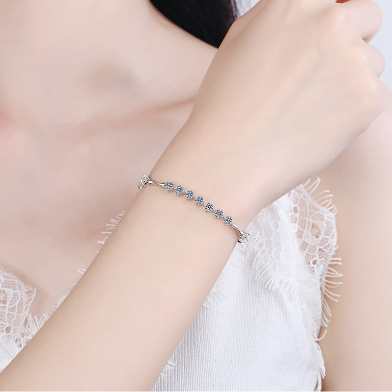 Elevate your summer style with this stunning high quality 925 sterling silver jewelry featuring a sleek linked chain bracelet adorned with dazzling moissanite stones. Crafted for lasting elegance, this premium silver jewelry showcases brilliant shine and cooling comfort perfect for warm weather occasions. The durable 925 silver jewelry maintains its luster through daily wear while moissanite stones add exceptional sparkle without compromising affordability. Each piece undergoes rigorous quality control to ensure tarnish-resistant properties and secure clasp functionality. Ideal for both casual and formal outfits, this versatile silver jewelry collection offers timeless design with modern sophistication. As direct manufacturers, we guarantee authentic materials and competitive wholesale pricing for this must-have seasonal accessory.