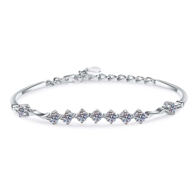 High Quality 925 Sterling Silver Jewelry Women’s Linked Chain Bracelet with Moissanite Stones for Summer Cooling Style Direct Factory Supply