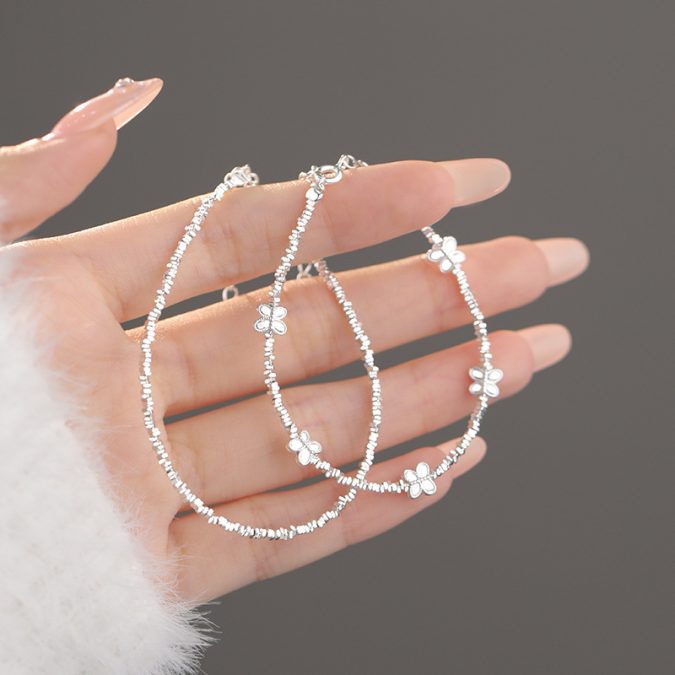 S999 Light Luxury Crushed Silver Jewelry Couple Bracelets Elegant Design Minimalist Versatile Delicate Matching Accessories for Women and Men