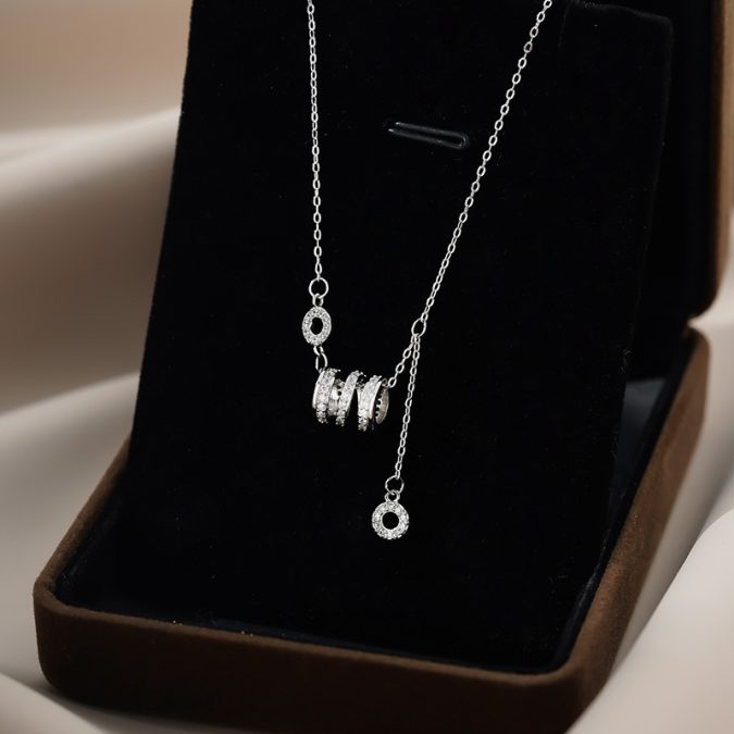 Elevate your style with this stunning S999 sterling silver jewelry featuring delicate diamond accents crafted into a sleek waist pendant design perfect for everyday elegance or special occasions this trendy choker or sweater chain seamlessly blends versatility and sophistication the slim adjustable chain ensures a customizable fit while the lustrous finish of the premium silver jewelry adds a timeless touch to any outfit designed for modern women who appreciate minimalist charm and high-quality craftsmanship this piece effortlessly transitions from casual daytime looks to evening ensembles its lightweight comfort and durable construction make it an ideal accessory for layering or standalone wear embrace contemporary flair with this diamond-accented silver jewelry that complements necklines and elevates your accessory game with understated luxury.