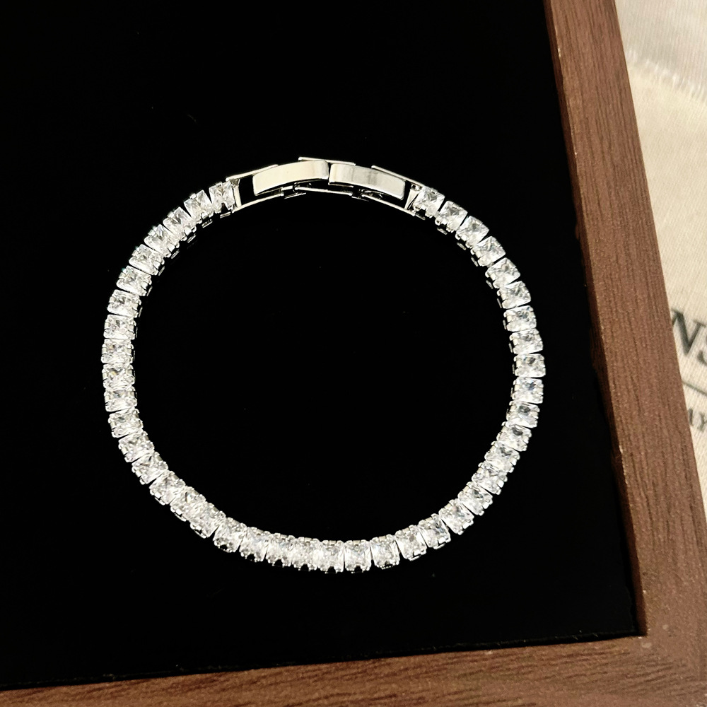 Silver Jewelry Minimalist Sparkling Cubic Zirconia Bracelet Elegant Everyday Wear Versatile Design Timeless Luxury Accessory
