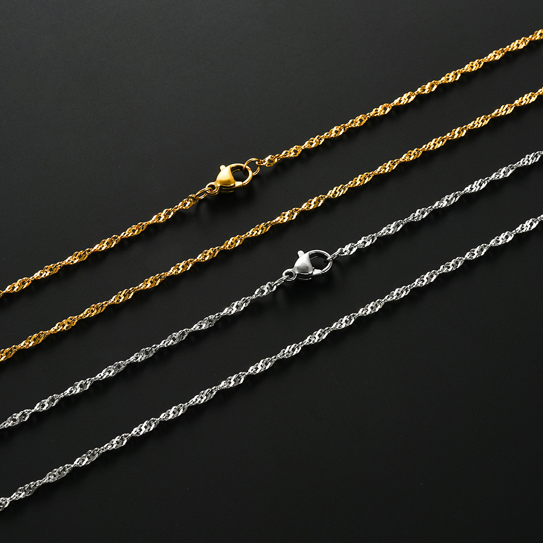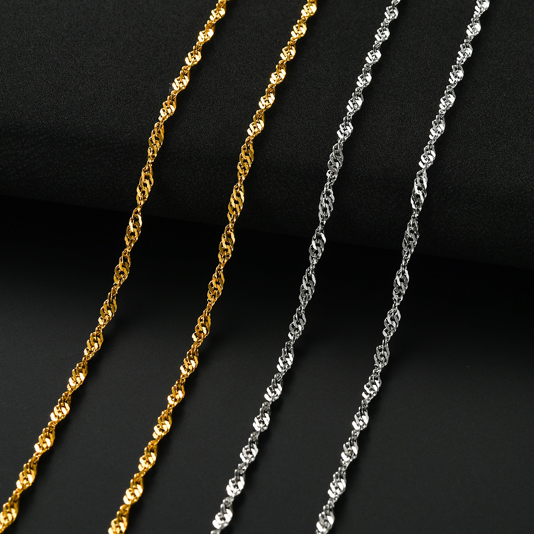 Silver Jewelry Gold Plated Stainless Steel Wavy Chain Necklace Fashion Simple Accessory