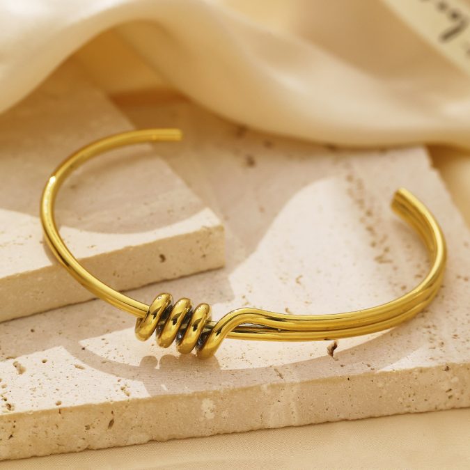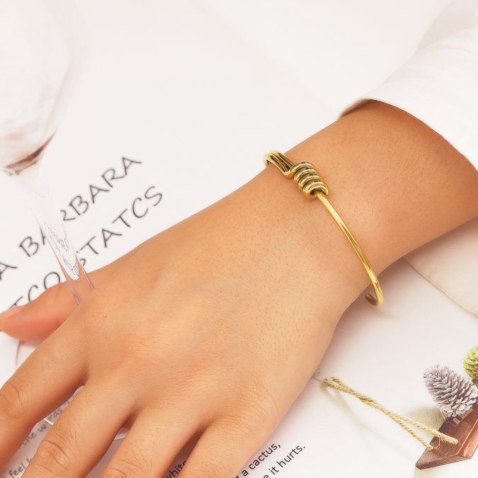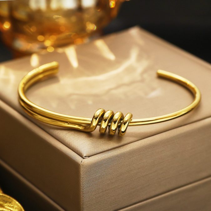 18k Gold Plated Stainless Steel C Shape Wrapped Knot Bracelet Silver Jewelry
