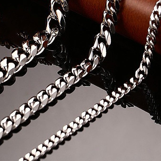 Silver jewelry men Cuban chain necklace bracelet 3mm to 9mm widths.