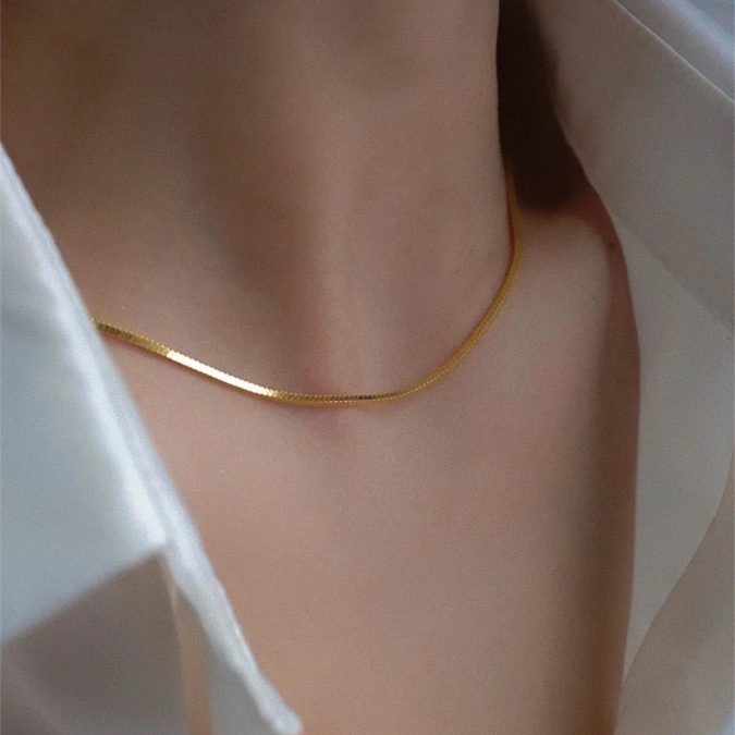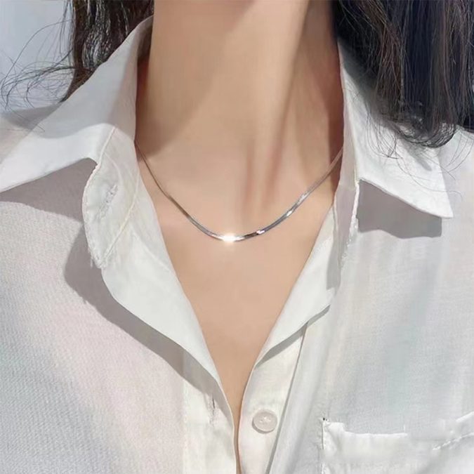 925 Sterling Silver Jewelry Women Retro Blade Snake Bone Chain Necklace Layering Collar