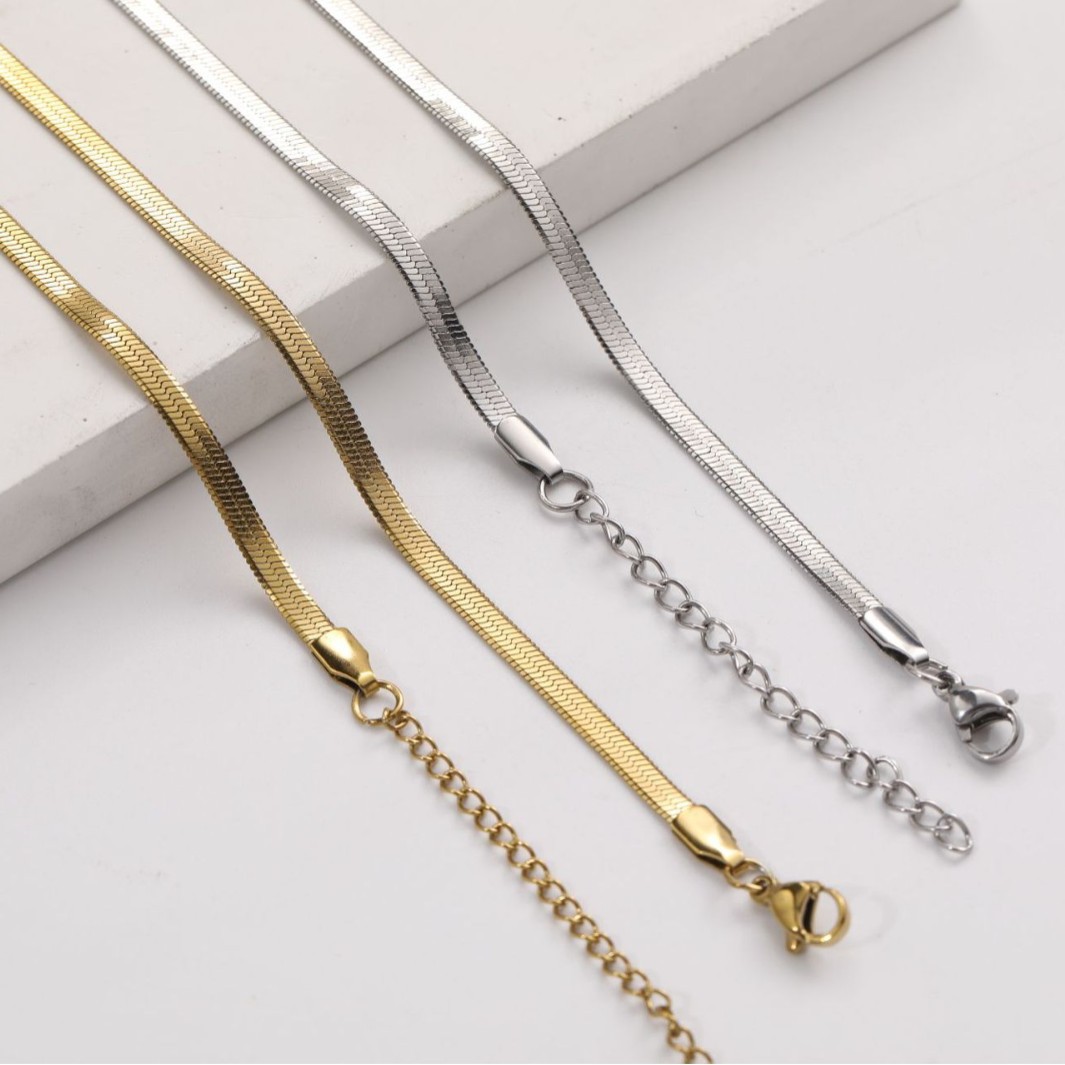 Silver Jewelry Stainless Steel Titanium Blade Flat Snake Chain Necklace for Men Women