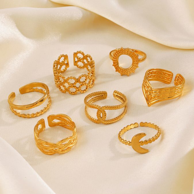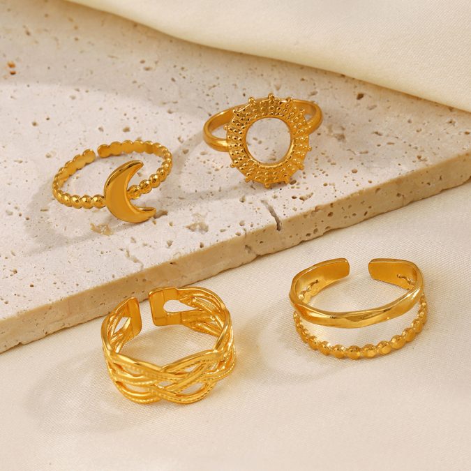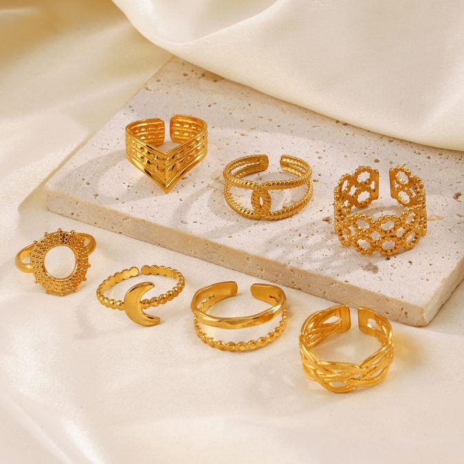 Silver Jewelry Open Ring Stainless Steel Cross Line Design Vintage Ethnic Elegant Fashion Style