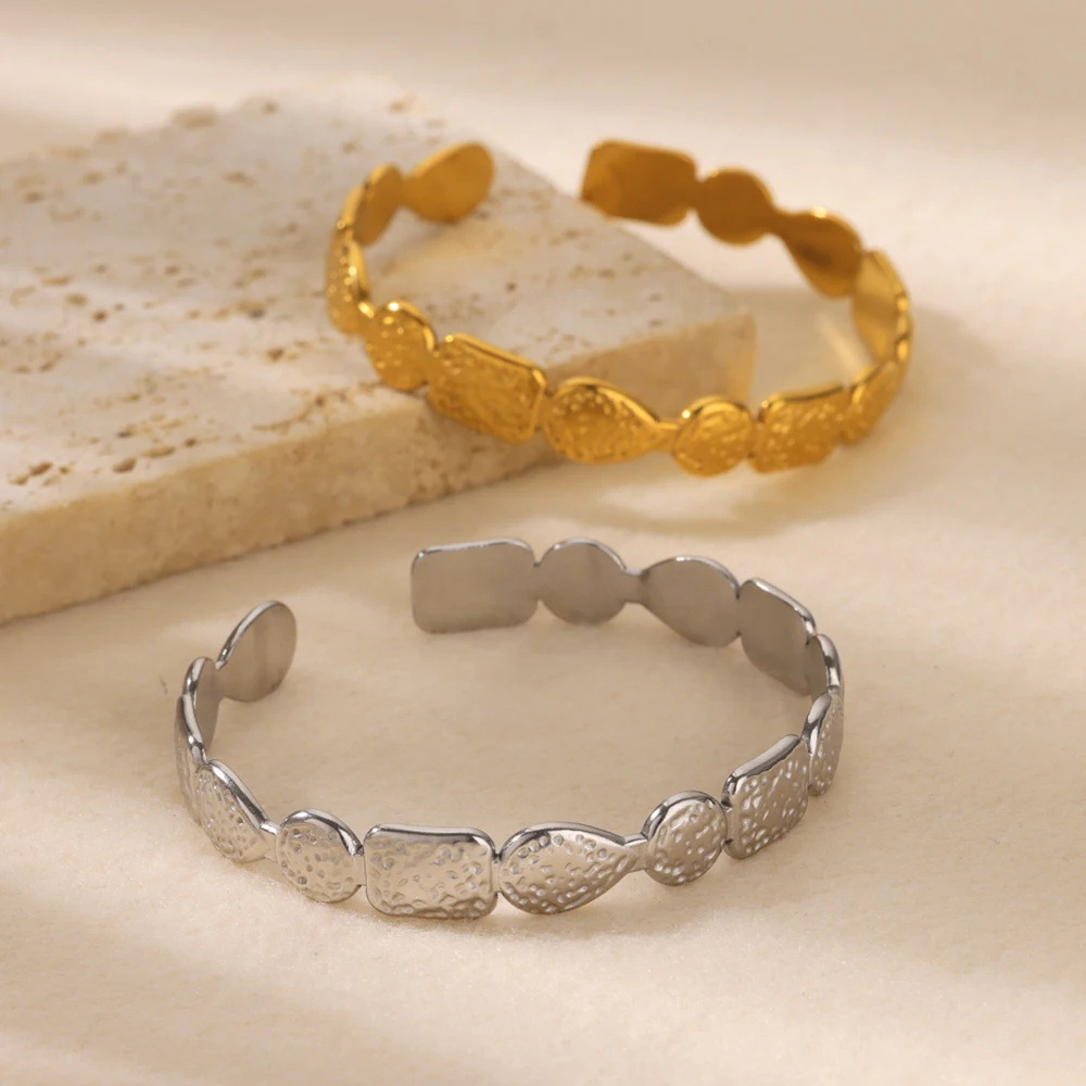 Retro Ocean Style Seashell Stainless Steel C Shaped Stackable Bracelet Ring Silver Jewelry