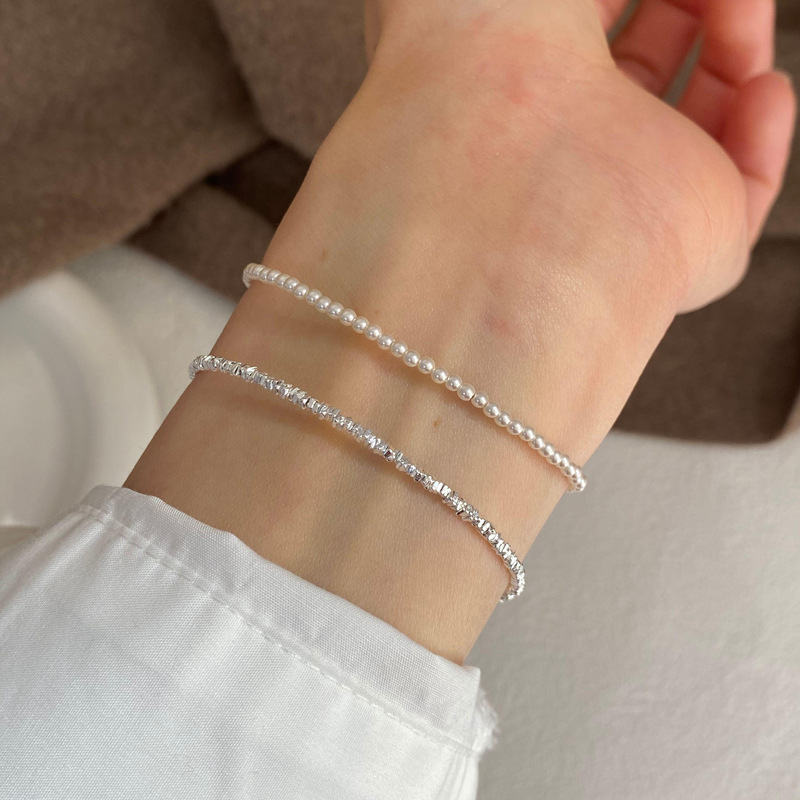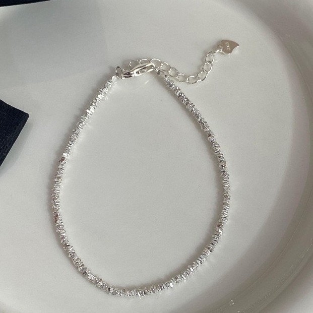 Stylish Minimalist 999 Sterling Silver Crushed Granule Chain Bracelet Exquisite Light Luxury Jewelry with Versatile Daily Wear Design for Women