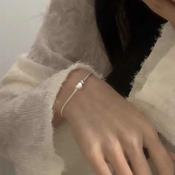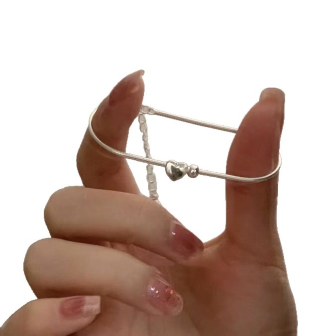 Trendy Heart Shaped Snake Chain Silver Jewelry with Small Silver Beads Minimalist Korean Style Elegant Design for Women