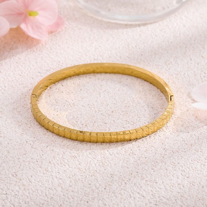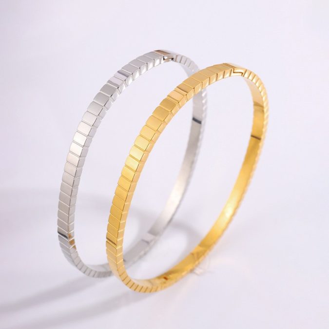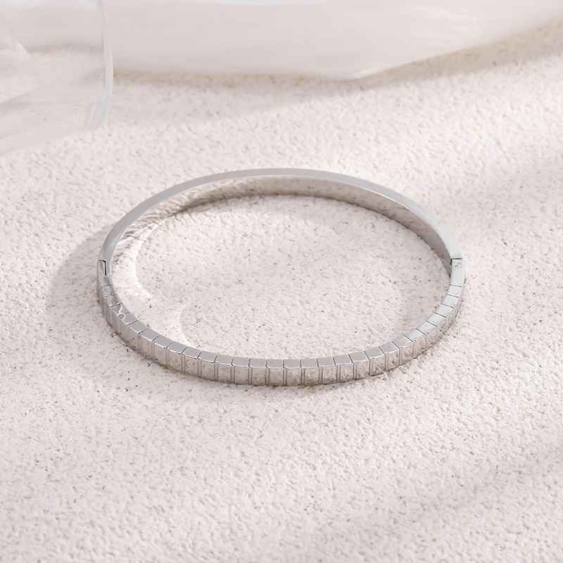 Women’s minimalist square stripe stainless steel clasp bracelet silver jewelry with premium feel.